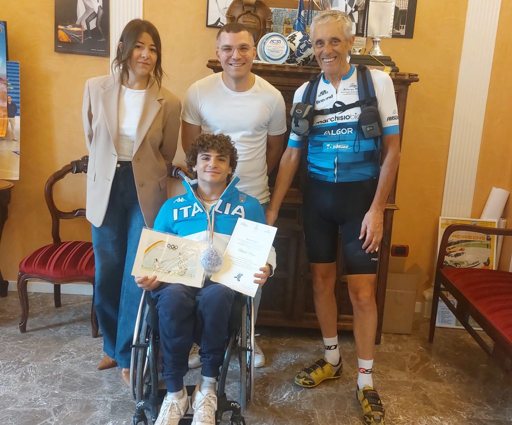 E’ partito in bici da Millesimo (Savona) il 4 giugno per consegnare un riconoscimento a tutti i partecipanti italiani alle Paralimpiadi 2024 di Parigi classificatisi al quarto posto. Santino Mellogno (team Marchisio Bici) ha fatto tappa a Porto San Giorgio per incontrare lo schermidore Michele Massa. L’iniziativa si è svolta questa mattina nella stanza del…