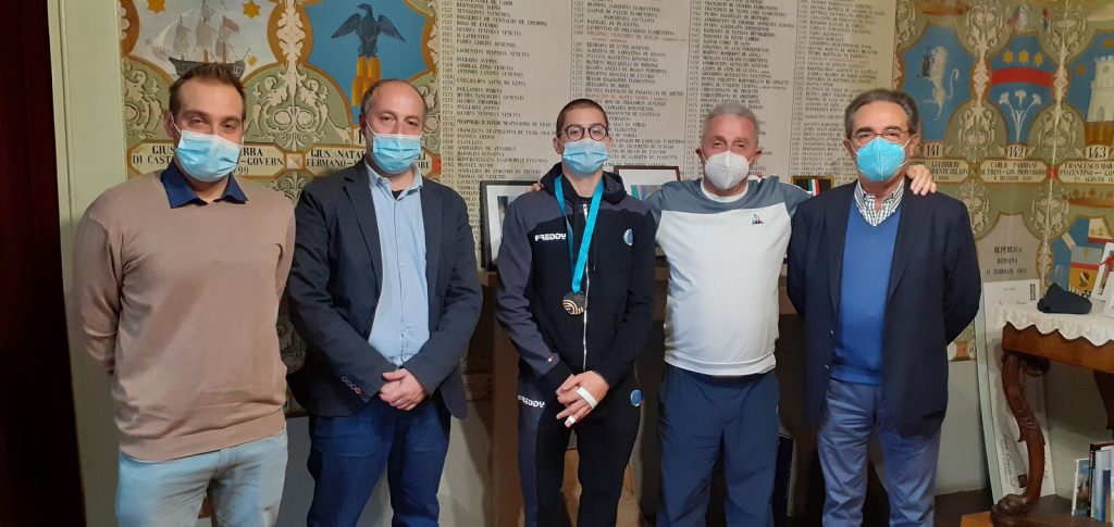 Questa mattina, medaglia al collo, è stato ricevuto a Palazzo Comunale di Fermo dal Sindaco Paolo Calcinaro e dall’assessore allo sport Alberto Scarfini che si sono congratulati con lui per il risultato all’esordio in Nazionale, ne hanno sottolineato l’impegno, il lavoro e la passione costanti che lo contraddistinguono, curando la preparazione sempre con molta attenzione. Presenti anche Luigi Peroli, allenatore e tutor dell’Accademia della Fgi e Alvaro Luzi, Presidente della Fermo 85, società nella quale è tesserato l’atleta, che hanno espresso la soddisfazione per un bel risultato come quello di Koper ed hanno messo in evidenza le qualità tecniche ed agonistiche di Macchiati. In particolare Luzi ha ricordato come Fermo stia diventando sempre più un polo attrattivo per ginnasti da tutta Italia, con intere famiglie che si sono trasferite qui in città da Roma, Salerno o dall’Aquila, solo per fare alcuni esempi, per curare la preparazione sportiva dei figli nella Fermo 85 e conciliarla con i loro impegni di studio. Mario Macchiati nella Coppa del Mondo in terra slovena aveva chiuso la prova sugli staggi simmetrici con 14.250, ad un decimo dal kazako Farukh Nabiyev con 14,350 e a due e mezzo dall’oro del turco Sercan Demir, leader di tappa a quota 14,500.