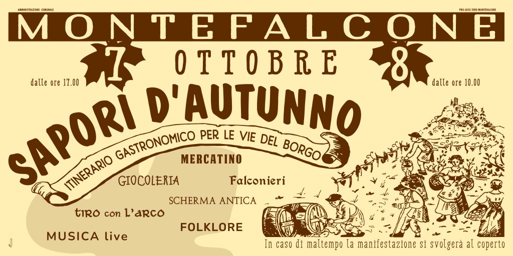Attesa per l’itinerario gastronomico fra le vie di Montefalcone Appennino, il borgo montano incastonato sulla roccia che sovrasta dalla sua vetta di 700 metri un panorama mozzafiato fra le vallate dell’Aso e del Tenna. Il prossimo fine settimana del 7 e 8 ottobre potranno essere degustati piatti tipici locali sapientemente preparati dal volontari della Pro Loco 2000. Lo staff presieduto da Lorenzo Tomassetti sta già predisponendo gli angoli cottura, le tavolate e gli addobbi in stile foglie cadute con le sagome dei personaggi di un tempo che fu per “Sapori d’Autunno”. Confermati per la prossima edizione i piatti tipici come la polenta al ragù e al tartufo, penne alla norcina, arrosticini e carni alla griglia, dolci e vino cotto, le caratteristiche caldarroste, gli stand saranno aperti nel pomeriggio dalle ore 17.00. La rocca medievale di Montefalcone ospiterà dimostrazioni di scherma antica e tiro con l’arco, dalla terrazza che si affaccia sulla rupe spiccheranno il volo gli uccelli rapaci addestrati dai mastri della falconeria, mentre le viuzze del paese saranno animate da mercatini, giocolieri, gruppi musicali e folkloristici che rievocheranno un’atmosfera incantata per i turisti e le famiglie che vorranno trascorrere una giornata all’insegna del buon gusto e del buon vivere.